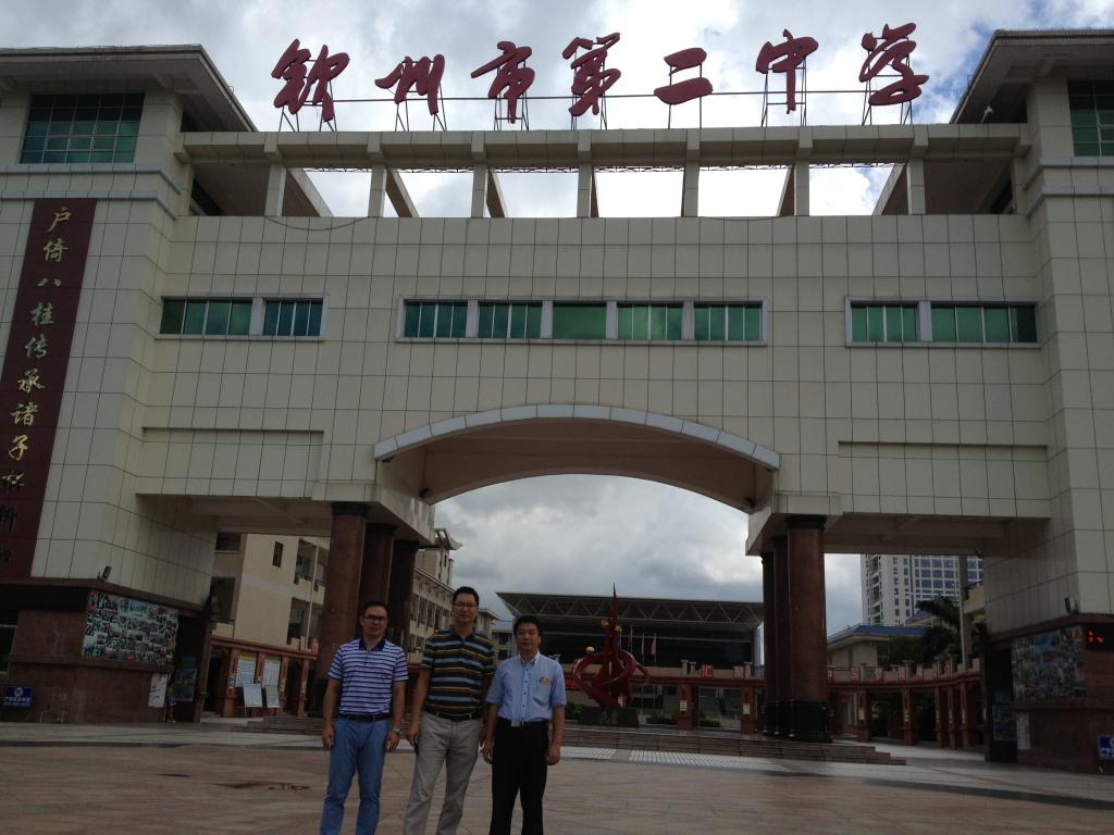 在广西钦州的招生宣传中,学院陈炜副院长率办公室到钦州一中、二中、灵山中学、灵山二中等钦州市重点中学进行招生宣传,在各中学的招生宣传过程中,陈副院长介绍了我校近几年的招生情况以及今年的招生计划并详细回答了相关问题。为加强学校与区内重点中学建立双方友好合作长效机制,陈副院长代表学校与钦州市灵山中学签署了《共建桂林理工大学“优质生源基地”协议书》。