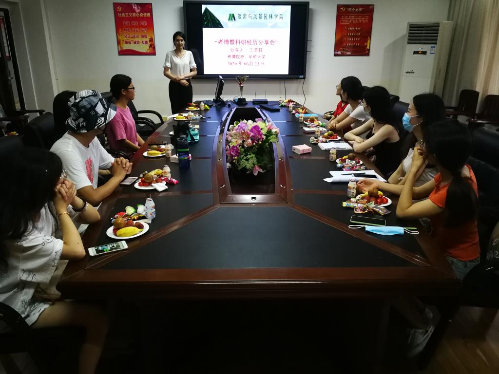 为了提高人才培养质量,激发广大研究生考博的动力,06月23日晚,学院在04509会议室举办了考博经验分享交流会。由2017级旅游管理专业研究生王美钰同学(目前考取华侨大学博士),向学院全体在读研究生介绍她的考博经验,并进行了现场交流互动。