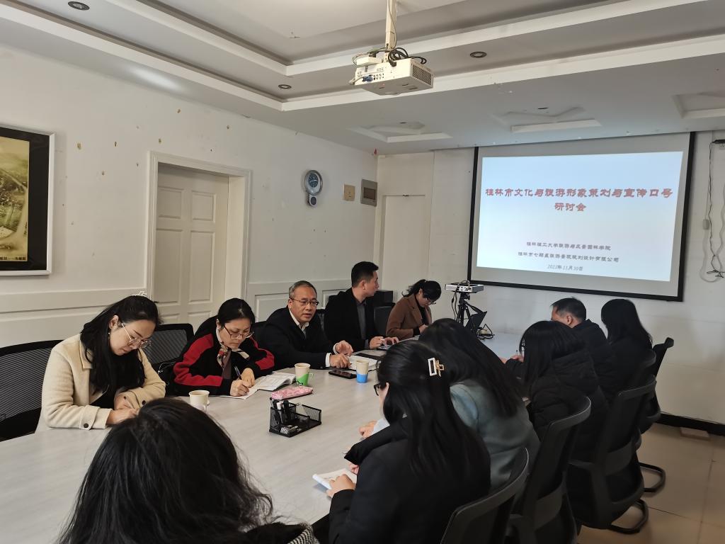 2021年11月30日,yl9193永利和桂林市七颗星旅游景观规划设计有限公司两个单位的专家学者20余人,在七颗星公司会议室召开了桂林市文化与旅游形象策划与宣传口号研讨会,参会的主要专家有吴忠军教授、邓敏教授、侯玉霞博士以及关秋红总经理、陈仁志副总经理、焦利梅总工程师、梁莉清项目总监、欧轩彤项目副总监等。