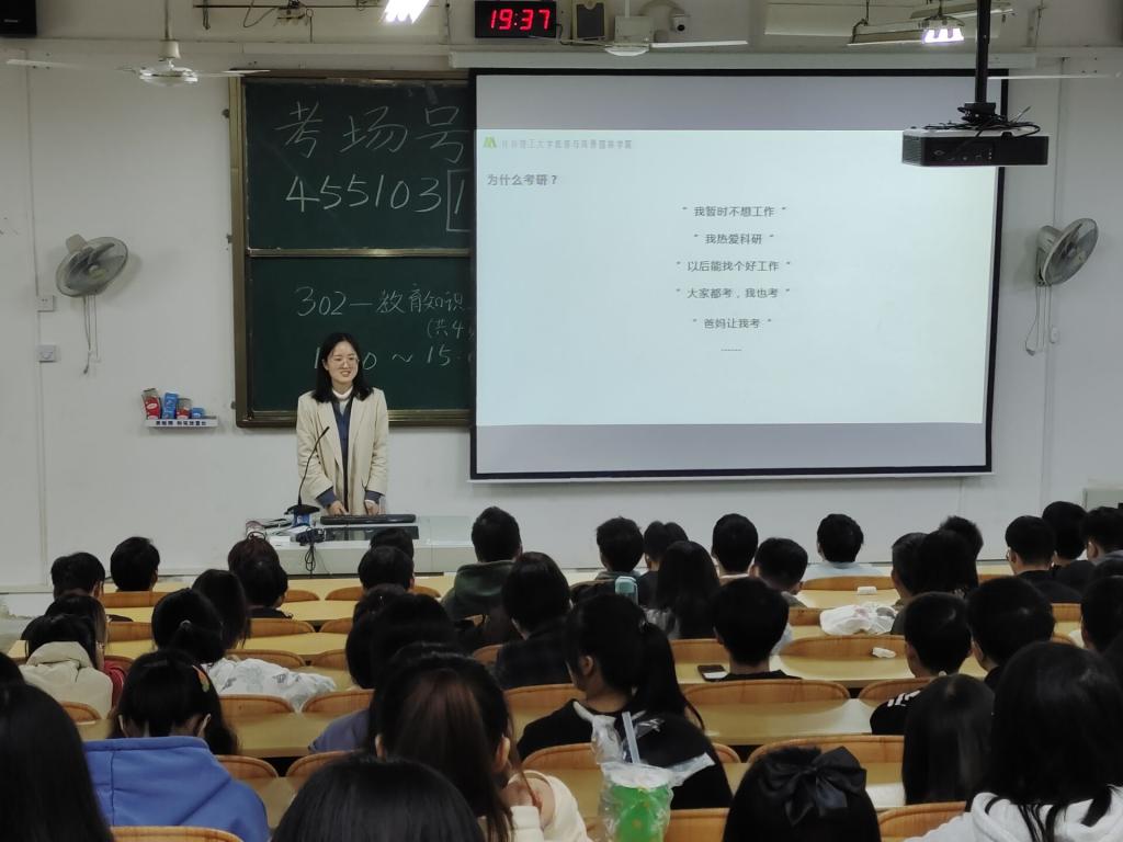 闫昱升同学根据自身实际,四年成绩始终名列前茅并成功推免保研经历与同学们进行分享,以“如何更好适应并过好大学生活”为主题与所有新生深切互动;田梦瑶同学以“做好规划,过好科研学习生活”为主题与新生分享读研点滴,让新生深刻了解硕士研究生的学习生活,明确学习目标,做好学习规划,为考研做好思想与行动基础。
