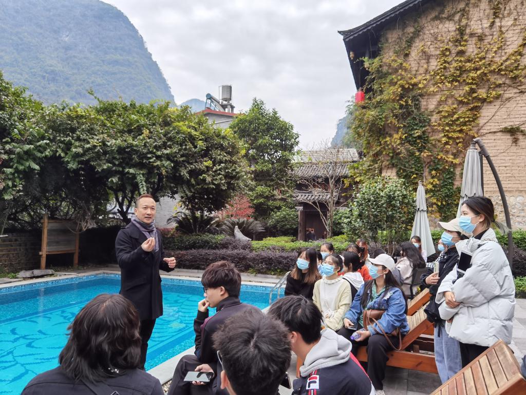 2021年12月15日,学院民族乡村酒店观测站在阳朔县墨兰山舍签约挂牌。学院党委书记王璐、副书记罗义凇、副院长黄燕玲、郑文俊及酒店管理教研室、实验室教师代表等一行10人出席挂牌仪式。同行的还有2020级酒店管理专业26名本科生,2021级10名研究生。