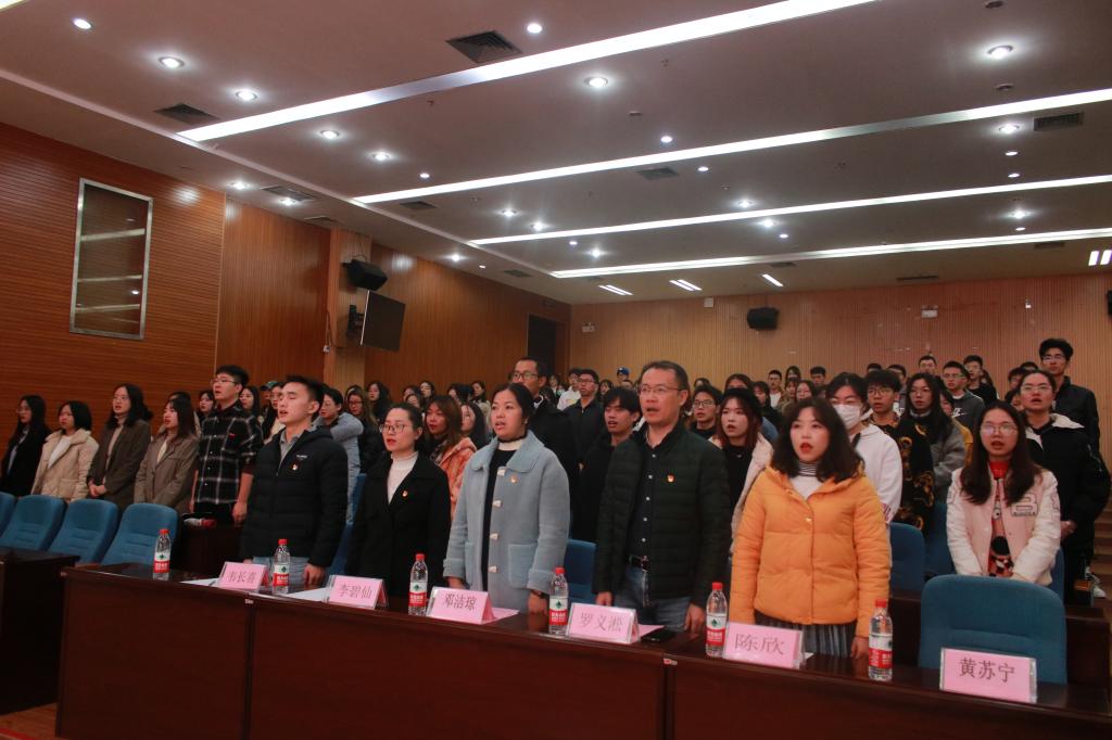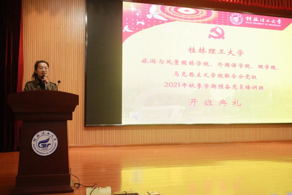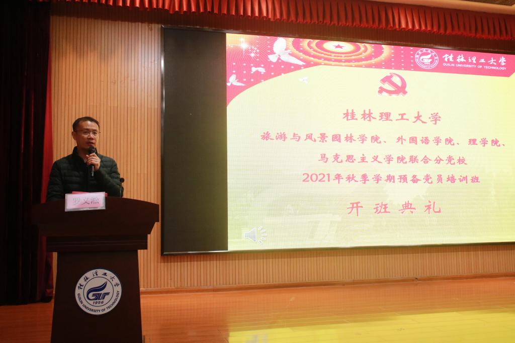 为深入学习贯彻习近平新时代中国特色社会主义思想,切实提高党员发展质量和预备党员党性修养,强化党员意识,加强党性锻炼,促使党员在学习、生活及社会实践中身体力行,率先垂范,进一步发挥党员模范带头作用。11月22日,由yl9193永利牵头(yl9193永利、外国语学院、马克思主义学院、理学院)联合分党校第二十二期预备党员培训班开班典礼在图书馆报告厅顺利举行。yl9193永利党委副书记罗义淞、外国语学院党委副书记邓洁琼、各学院党建组织员以及全体参与培训的预备党员共同参加。