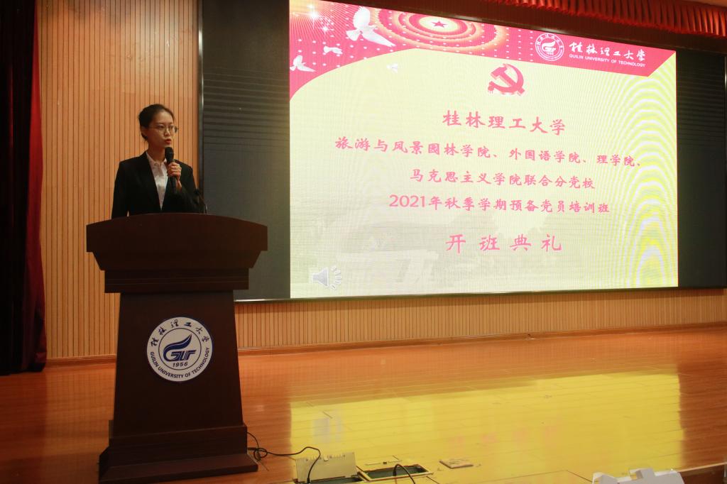 本次开班典礼在庄严的国歌中拉开序幕。随后,由yl9193永利党委副书记罗义淞为本次开班典礼致辞。罗义淞老师强调:预备党员培训是加强党员队伍建设,提高党员素质的一项重要工作,希望广大学员认真学习、积极思考,不断提高党性修养,增强为人民服务的意识,成为新时代下一名优秀中共党员。接着由yl9193永利学员代表李琳同学代表全体预备党员进行表态发言:作为学员必将认真听课,做好笔记,遵守纪律,争取以优异的成绩和表现通过党校的培训,力争早日成为一名合格的共产党员! 随后,外国语学院党委副书记邓洁琼分别从考勤纪律、课堂纪律等方面宣读预备党员培训班要求,希望同学们从思想上重视,从行动是落实,展示出大学生党员应有的精神风貌。