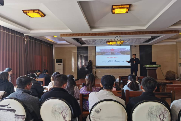 为提升2021级应用经济学和旅游管理专业的研究生对红色文化的了解与认识,王璐书记分别从红色旅游的定义、红色旅游的特点、红色旅游的内涵和红色旅游的意义四个方面进行详细讲解,以生动形象的事例和幽默风趣的语言向同学们阐述了红色旅游的开发过程和研究方向。
