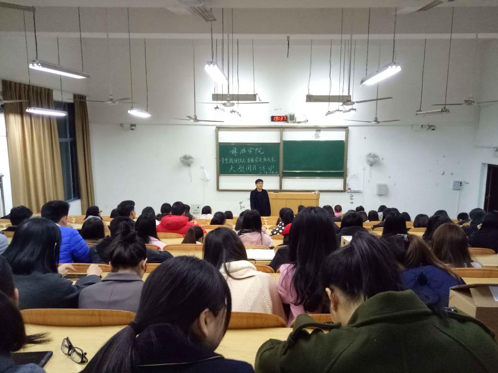 活动伊始,各年级辅导员组织学生再次对十九大报告进行了学习。学习过程中,学生听讲认真,及时做笔记。学习结束后,学生代表上台对“十九大”报告内容发表了自己的意见:“十九大报告总结了过去五年工作和历史性变革,同时也阐述了未来我国建设的主要方向以及发展目标,令人无比自豪且对我国的发展充满了信心”。最后,各辅导员就主题内容和学生进行了互动,现场互动气氛热烈。